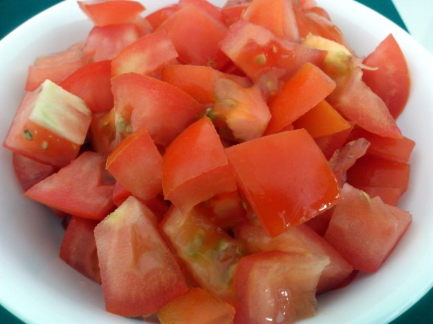 Grind the green chillies, garlic, coriander and fennel seeds to a paste and keep aside.
